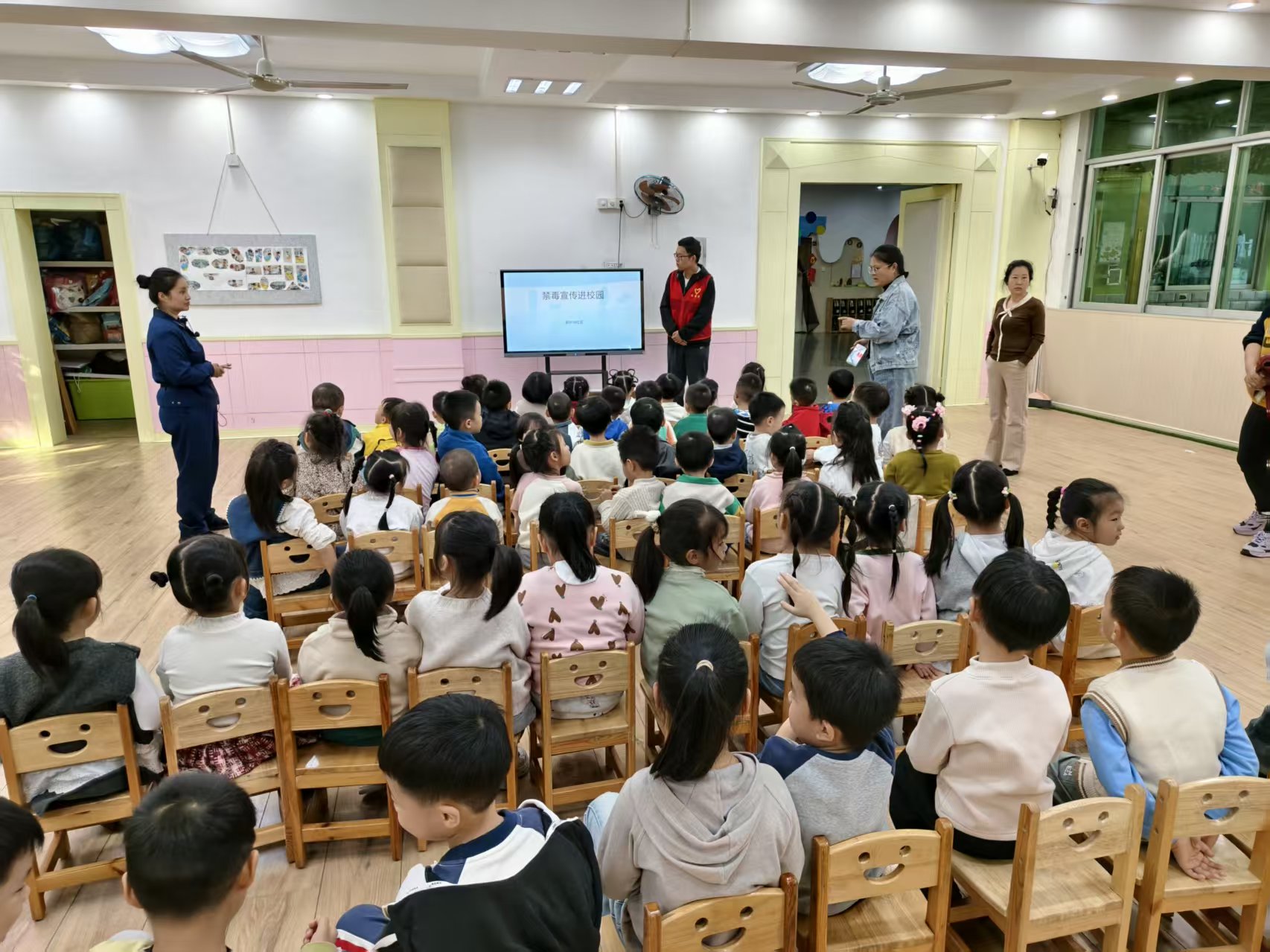 活动中,社区禁毒宣传员结合幼儿身心特点,通过PPT讲解、案例分析、实物展示等形式,用通俗易懂的语言向同学们介绍了毒品的种类、伪装形式及严重危害。从传统毒品到“奶茶”“跳跳糖”“邮票”等新型伪装毒品,宣传员逐一拆解其迷惑性特征,提醒同学们警惕陌生人提供的零食、饮料,坚决拒绝不良诱惑。