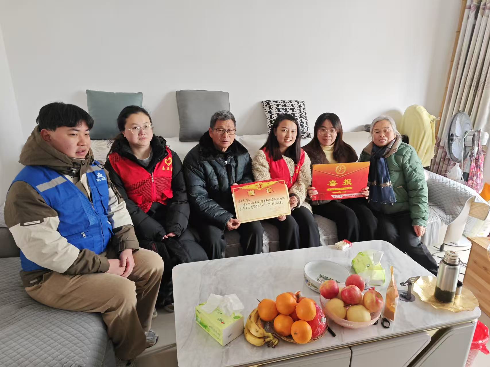 近日,茶叶坞现役军人余文杰同志因在部队表现优异、功绩卓著,荣获部队授予的“三等功”荣誉称号。为表彰余文杰同志为国防事业作出的突出贡献,弘扬爱国主义精神,增强军人军属的荣誉感和自豪感,茶叶坞社区于2026年1月22日上午,由茶叶坞社区党委书记梁露带队,联合新村街道退役军人服务站前往余文杰同志家中,为荣立三等功的余文杰同志及其家属送上喜报和慰问金,并致以热烈的祝贺和崇高的敬意。