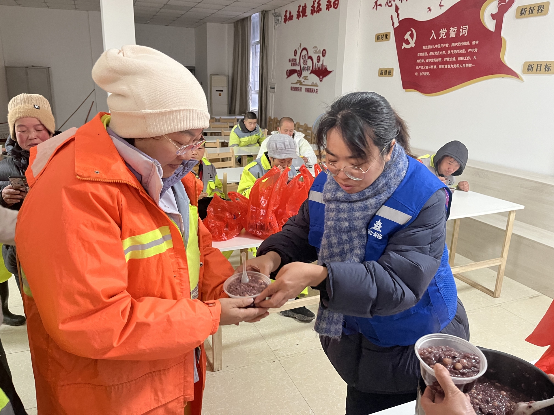 岁寒腊八,情暖人心。在传统佳节腊八节来临之际,为弘扬中华民族传统文化,表达对城市美容师的敬意与关怀,茶叶坞社区于1月26日上午组织开展了“情暖腊八,粥香四溢”慰问环卫工人活动,为辛勤工作在一线的环卫工人送上节日的祝福和温暖的腊八粥。