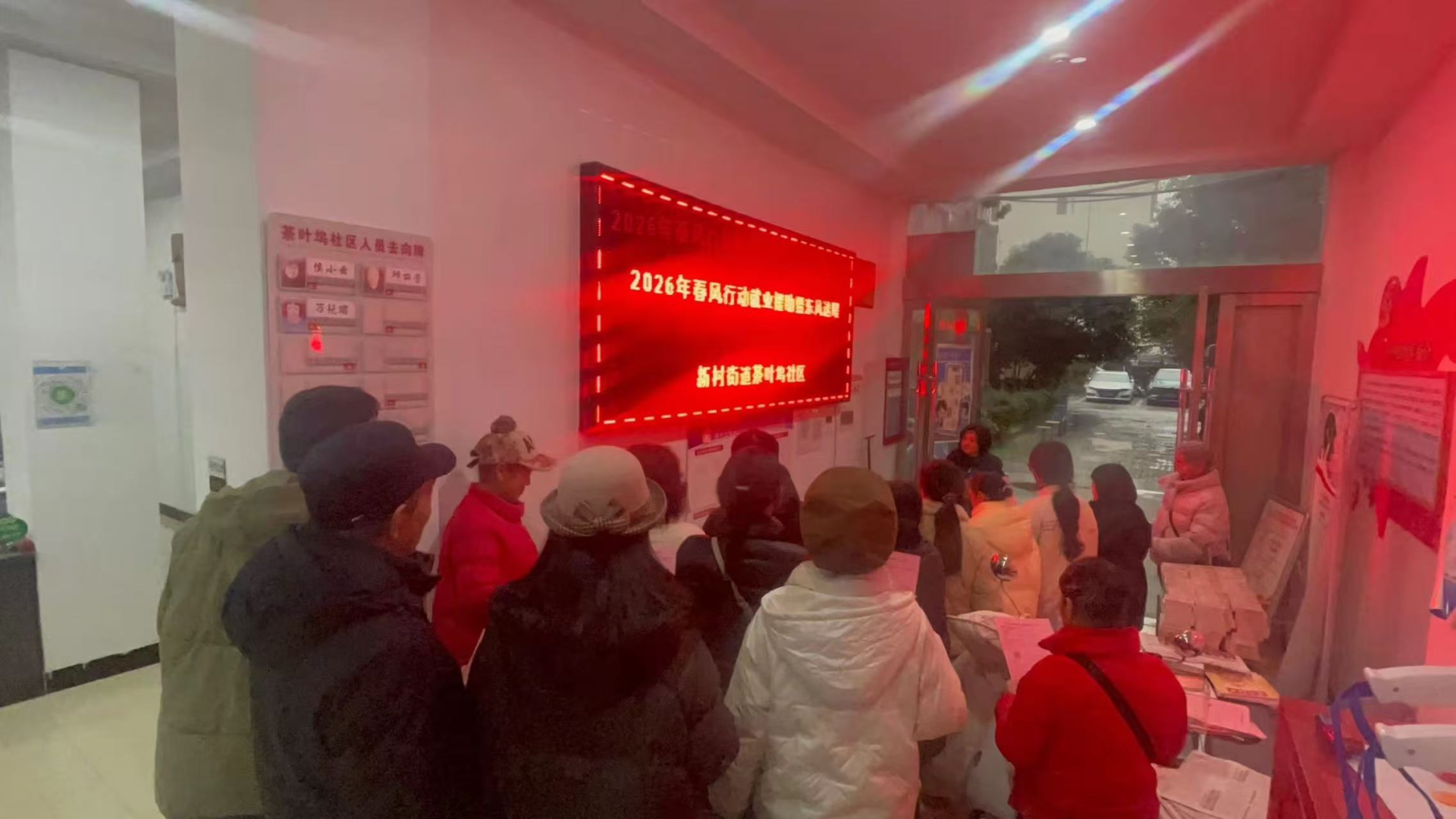 为扎实做好稳就业、保就业工作,切实帮扶辖区失业人员、就业困难人员、退役军人、返乡务工人员等重点群体就近就地就业,近日,茶叶坞社区就业之家举办2026年春风行动暨就业援助专场招聘会,把优质岗位、政策服务送到居民“家门口”,以暖心行动点亮居民就业路。