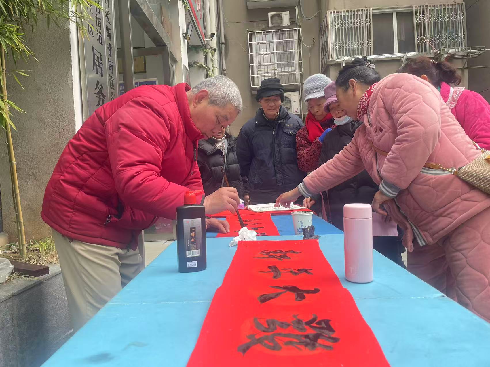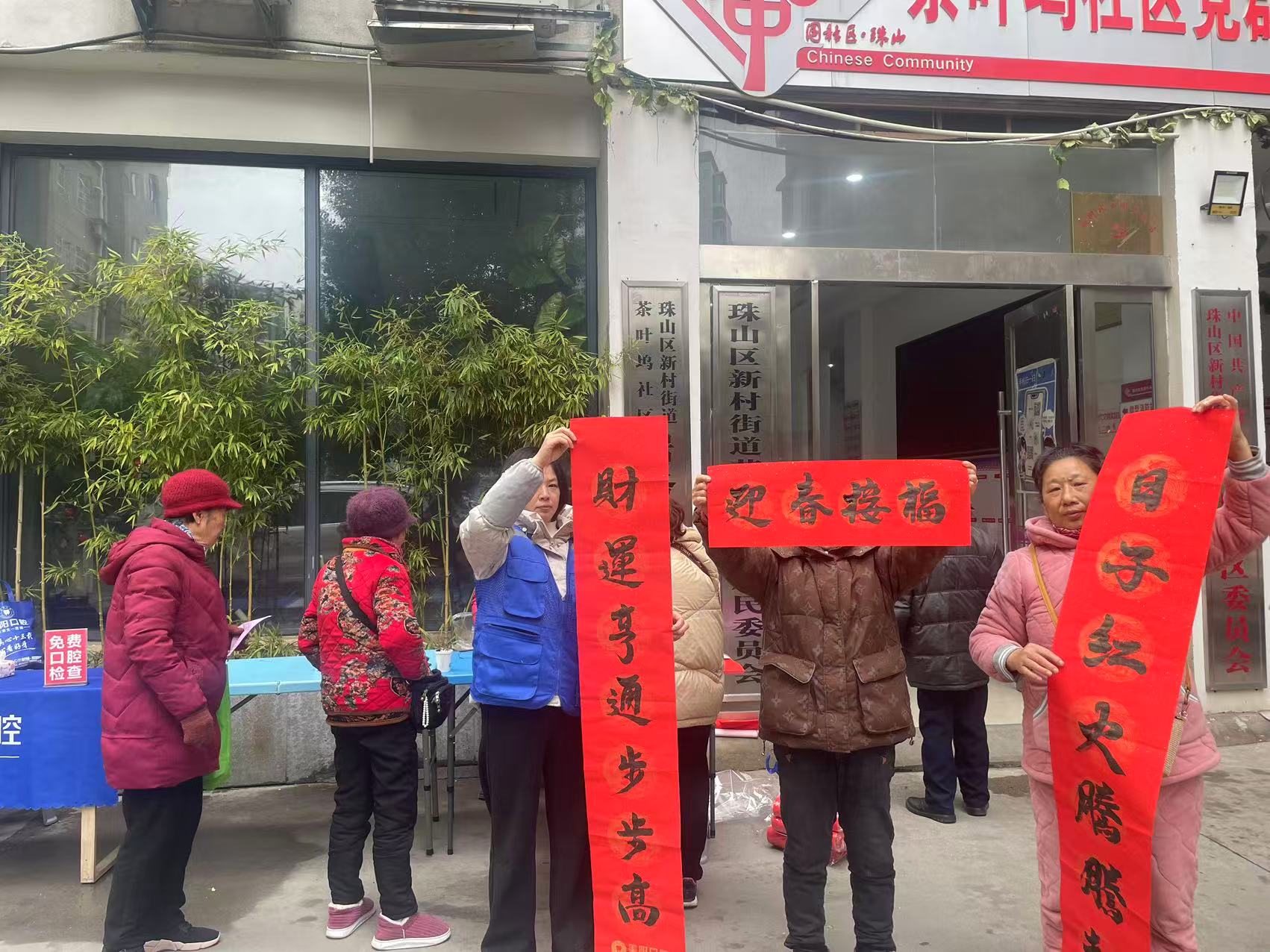 新春将至,年味渐浓。为弘扬中华优秀传统文化,营造喜庆祥和的节日氛围,丰富居民精神文化生活,2月10日,茶叶坞社区组织开展“写春联、迎新春”主题活动,邀请辖区书法爱好者现场挥毫泼墨,为居民送上新春祝福。